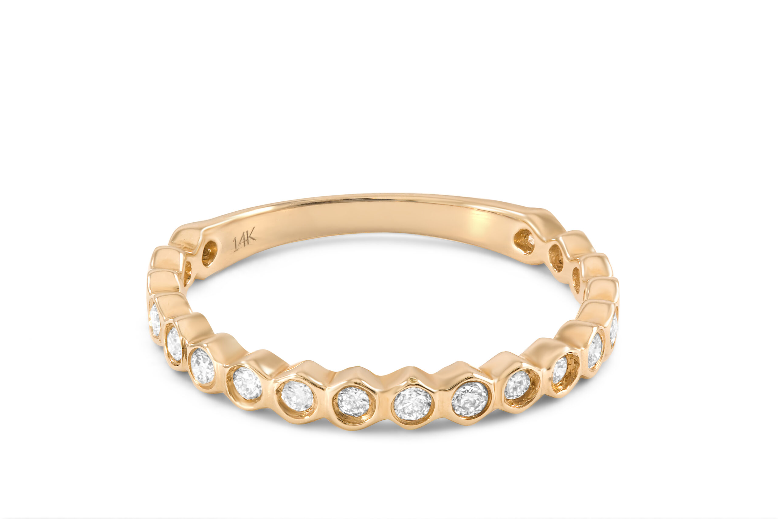 14K Honey Comb Shape Single Row Band with Round Diamond 0.30CT.