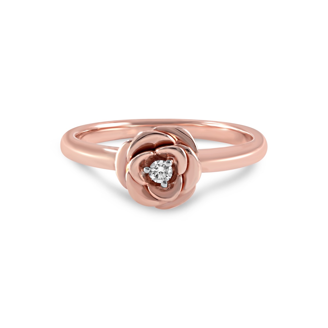 14K Rose Shape Band with a single Diamond 0.05CT.