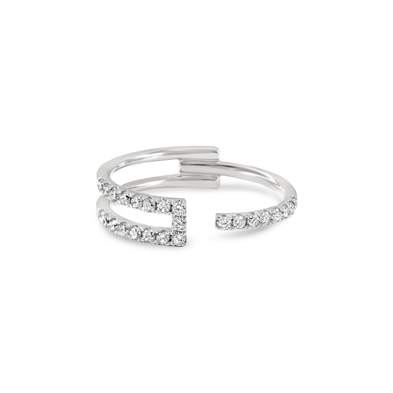14K Split Band with Two Diamond Row Connected with Single Row in Round Diamond 0.35CT.