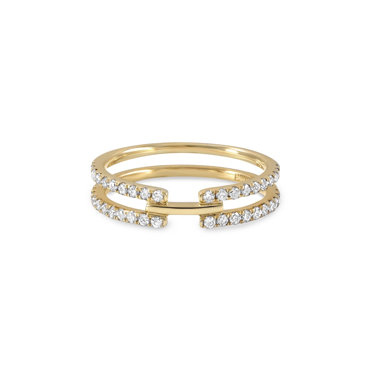 14K Band with Two Diamond Row connected with Gold Bar in Round Diamond 0.45CT.