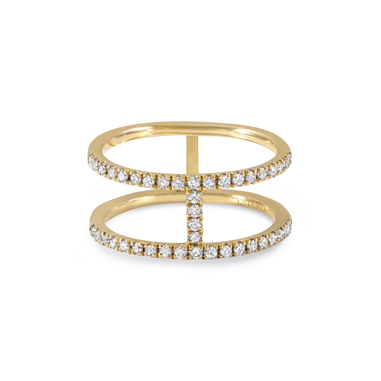 14K Horizontal H Shape Band with Round Diamond 0.45CT.