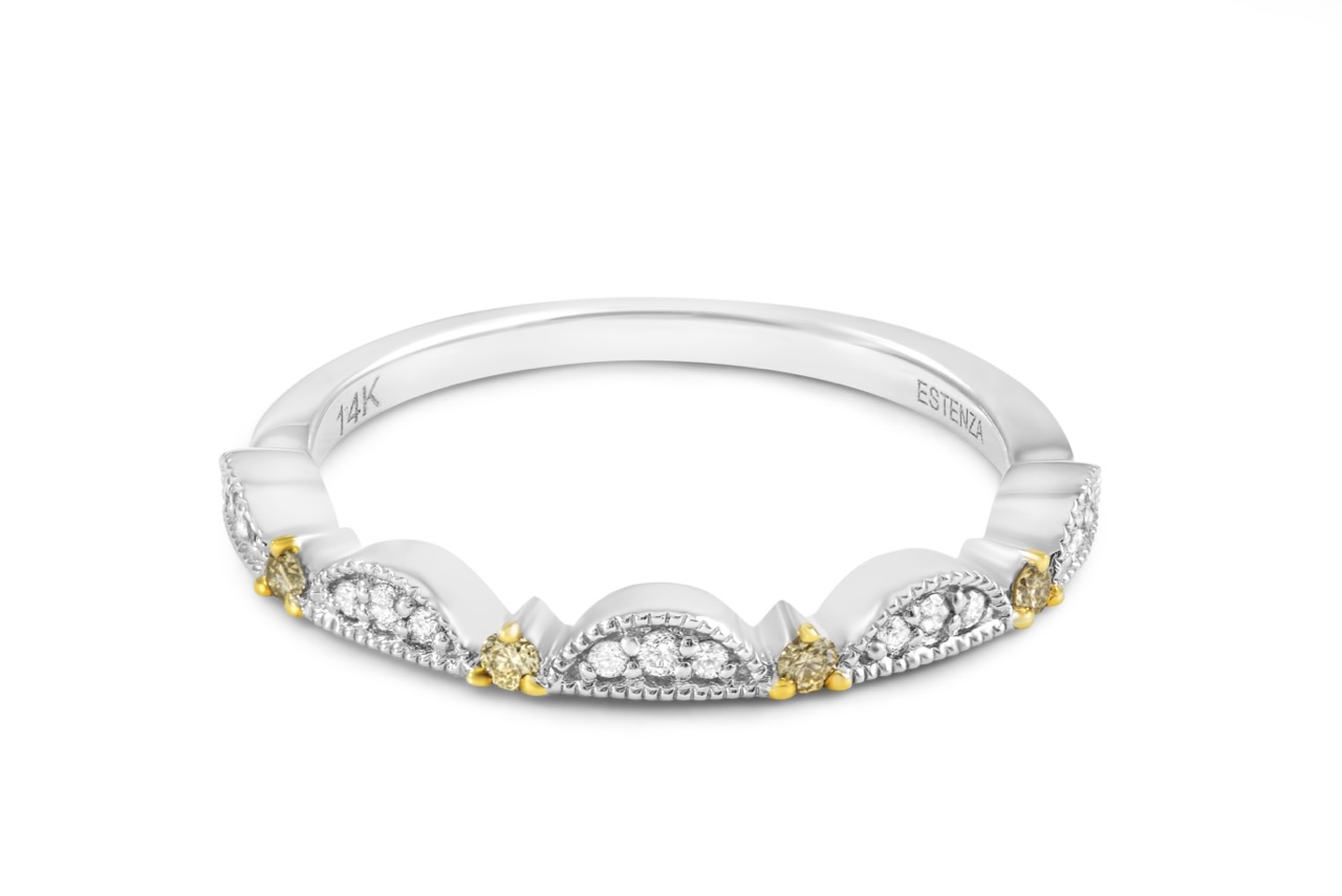 14K Scalloped Band in Round Diamonds 0.15CT.