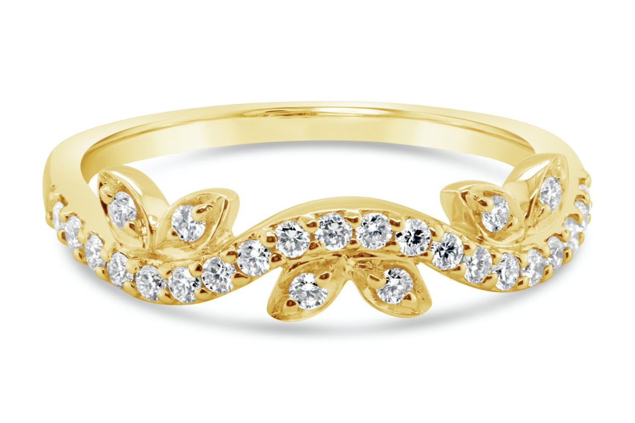 14K Band with Leaf Shape and Single Pave Set Row of Diamonds 0.30CT.