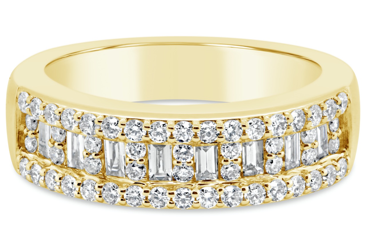 14K Band with Baguettes and Round Diamonds 0.70CT.