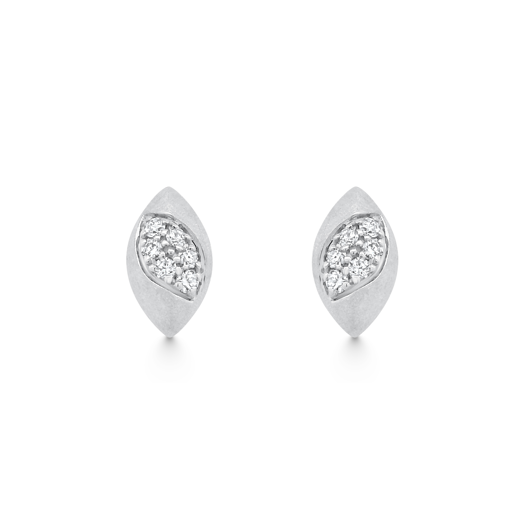 These exquisite marquise-shaped stud earrings are crafted in 14K gold with a brushed finish, exuding a modern yet timeless elegance. Nestled within each earring is a cluster of dazzling diamonds, artfully set in a delicate leaf-like pattern that adds a touch of organic sophistication.
